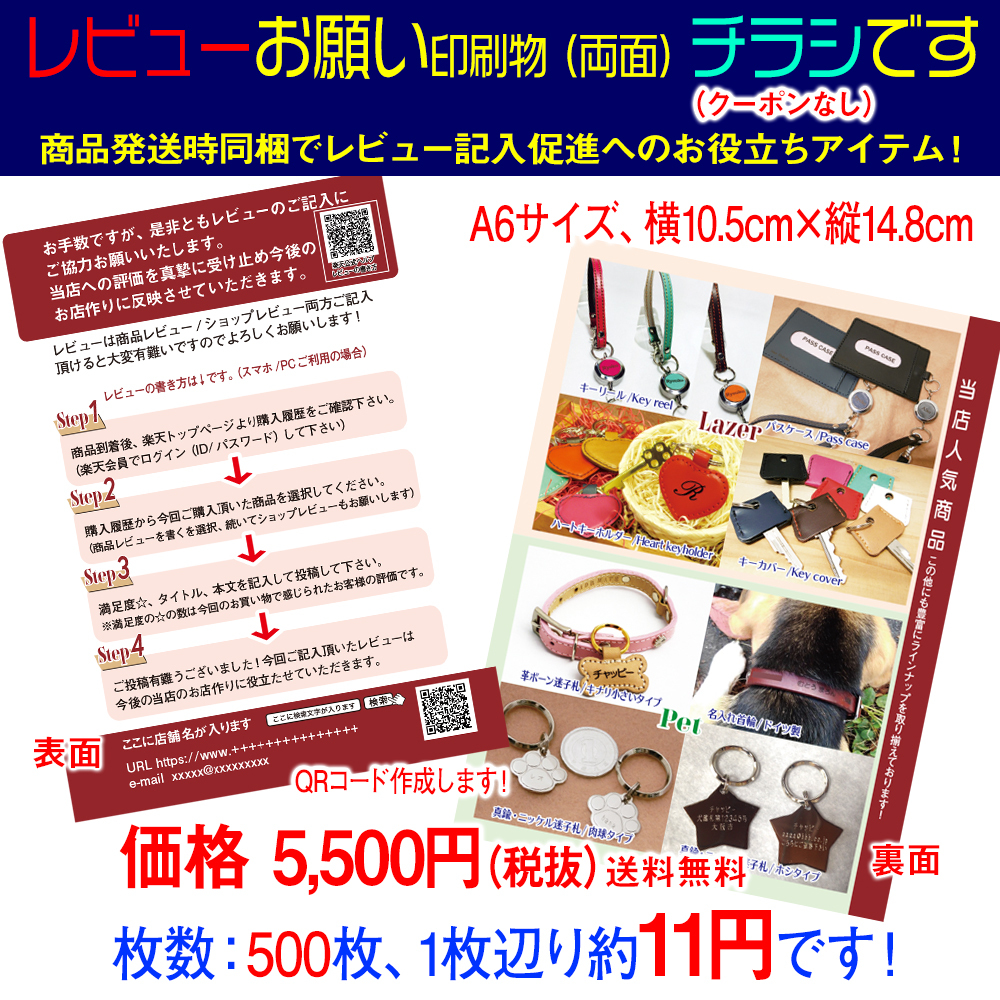 楽天実績出店8年の経験で応援サポート 送料無料 店舗商品発送時レビューお願いチラシ印刷物で販売 カラー3色からお好みで クーポンなし 楽天 市場店舗さん応援サポートjoy
